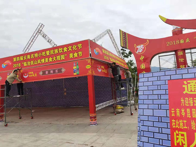 云南临沧佤风情美食节采购诺构近8000米200展览架为此活动保驾护航,接下来为大家展示工厂制作及现场搭建的的实物照。